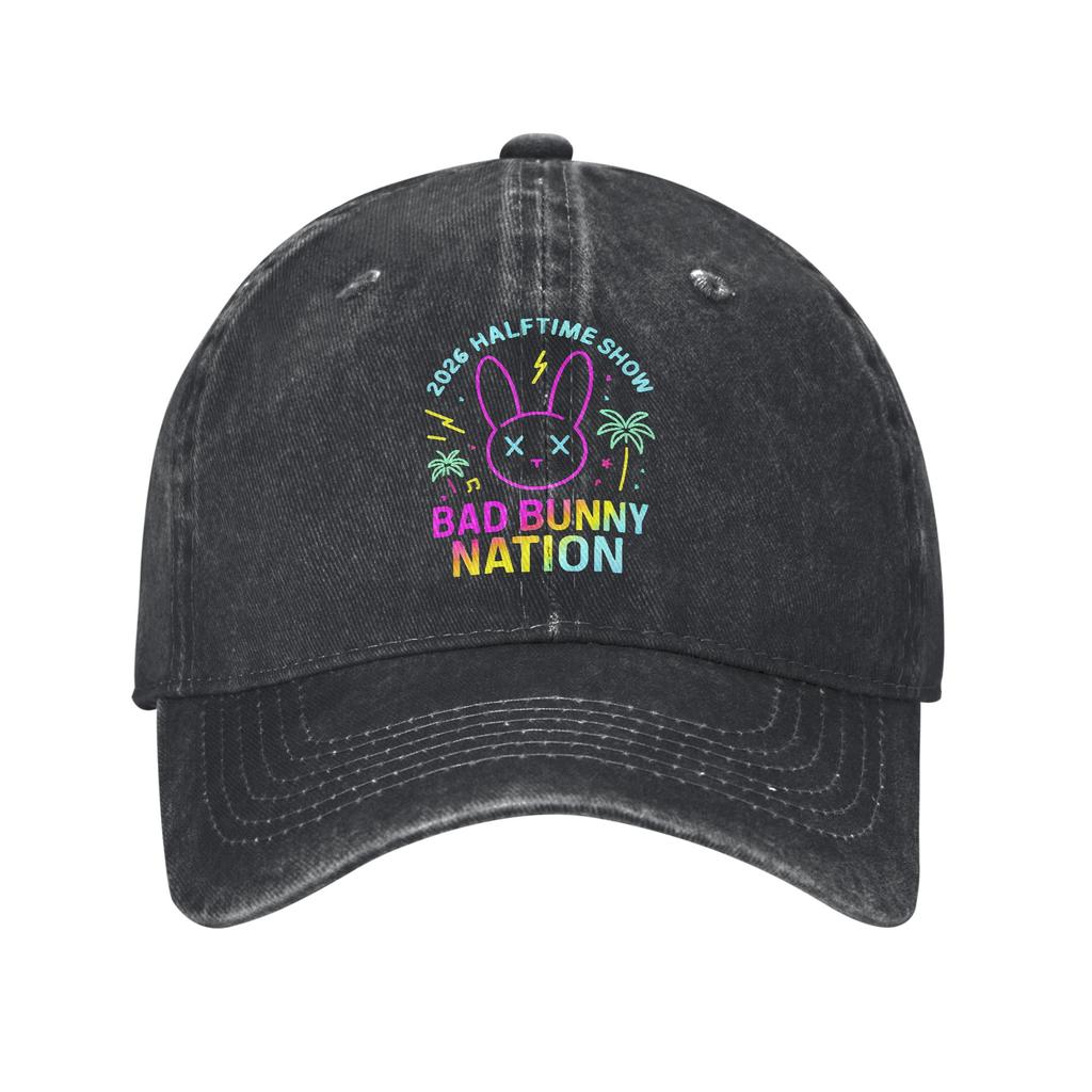 Men Women Bads Bunnys Halftime Show Printed Hat Classic Distressed Denim Baseball Cap Adjustable