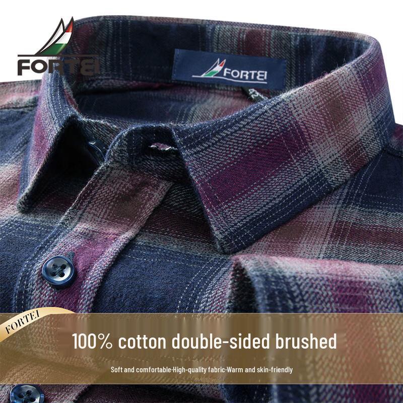 Futing Heren Volledig Katoen Dubbel Geborsteld Lange Mouwen Geruite Overhemd