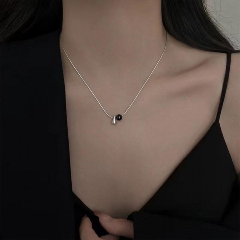 Together Black Ball Triangle Chain Necklace