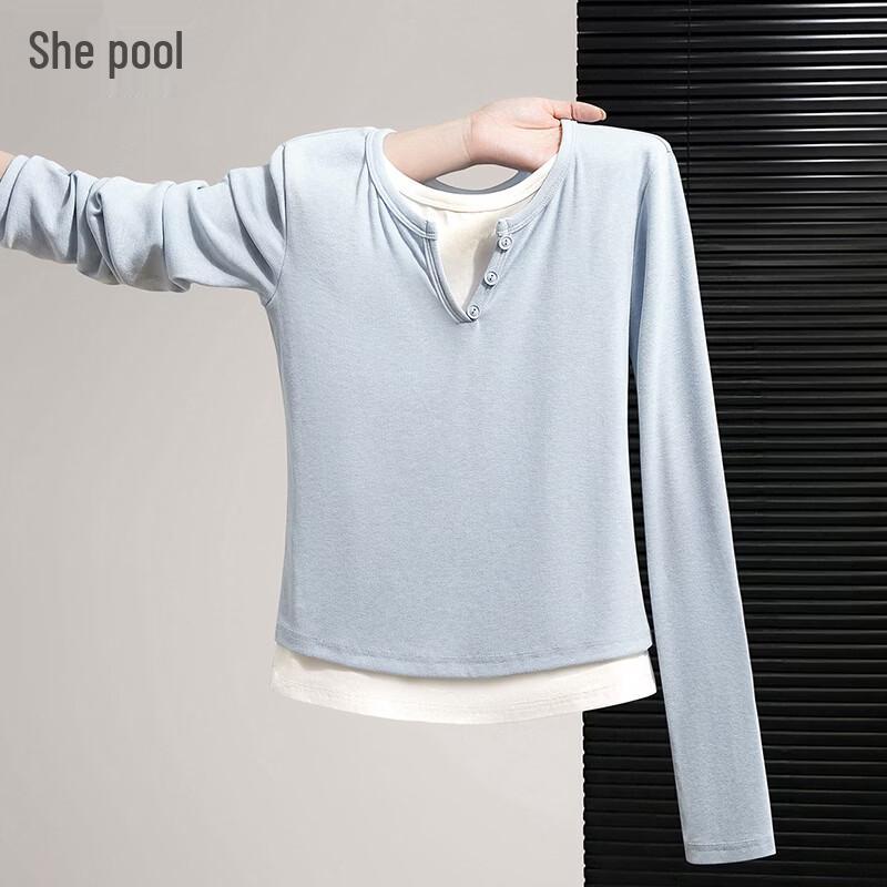 Women's Color Block Faux Two-Piece Round Neck Long Sleeve T-Shirt