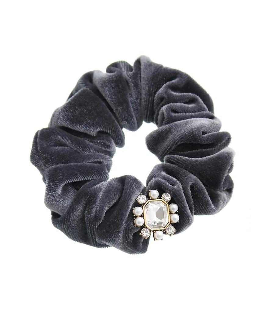 VINGTAINE Velvet Scrunchie with Antique Cute and Stylish Hair Present Beads, Style, Accessory, Gift, (HS-188-GY)