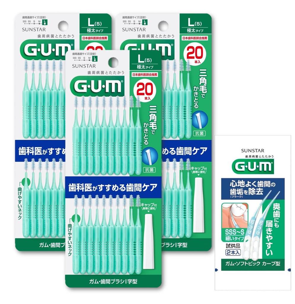 GUM Interdental Wire Type L 20 Brushes x 3 Packs Bonus Brushes, I-Shaped, [Size (5)], +