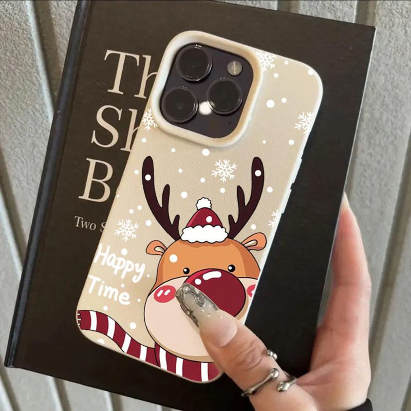 Christmas Elk Deer Lichee Pattern Phone Case for iPhone 17 16 Pro Max Air 15 14 Plus 13 12 11 XR X XS Max 16E Shockproof Cover