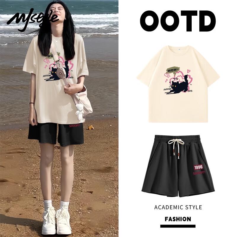 MJ STYLE Women's 2026 Summer Cotton T-shirt & Shorts Set