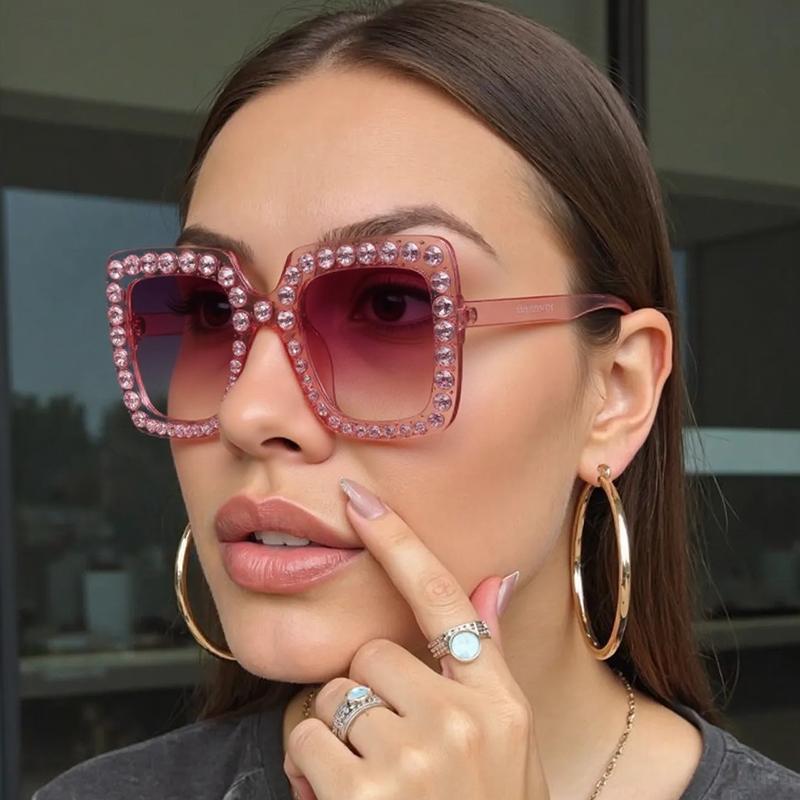 Luxe Designer Strass Zonnebril Dames Vierkant Oversized Montuur Diamant Vintage Feestbril Mode Merk