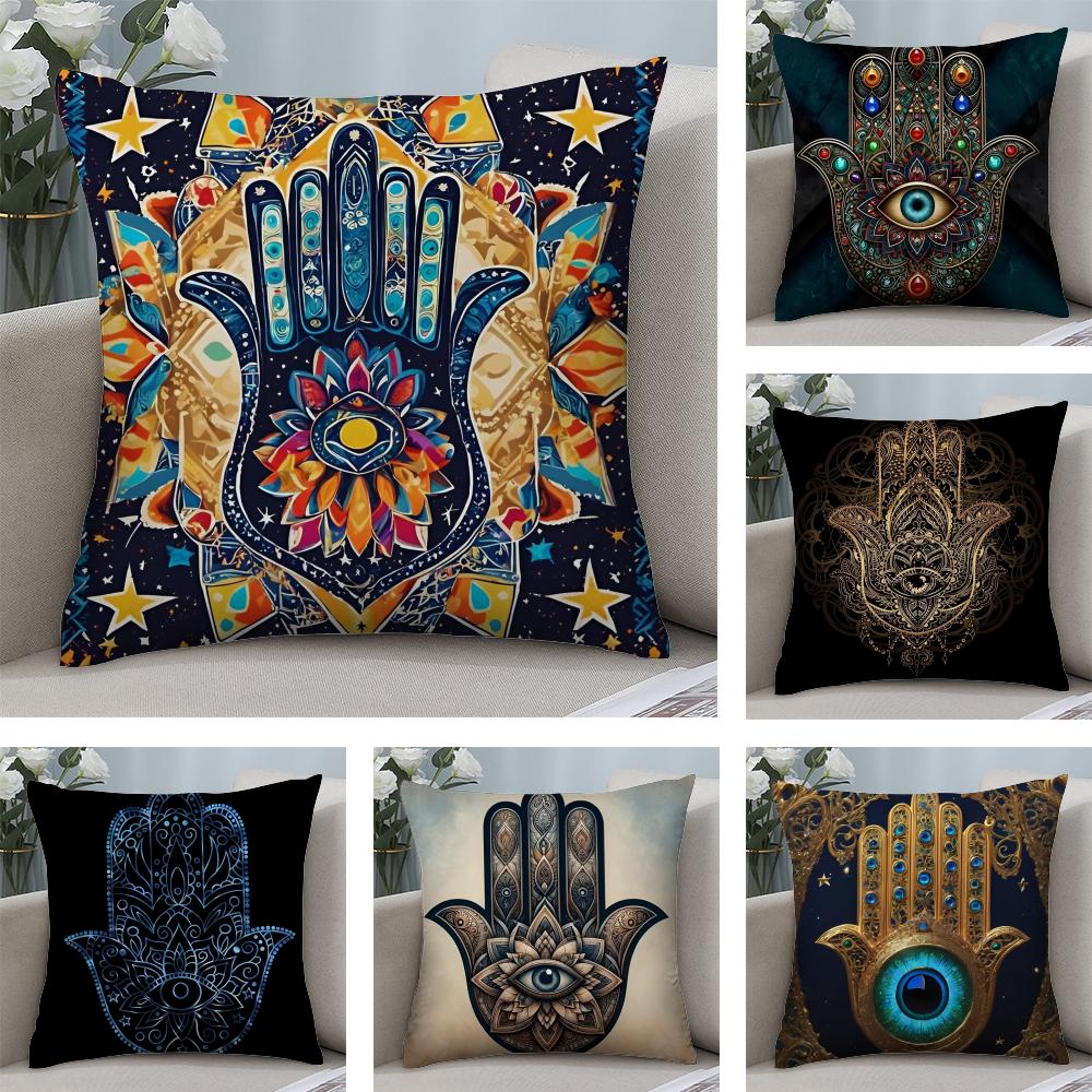 Klassieke Hamsa Kussensloop Zacht Pluche Stof Dubbelzijdig Bedrukt Bankkussenhoes voor Alle Seizoenen Woondecoratie Cadeau