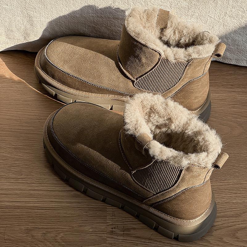High-top waterproof elastic snow boots winter fur integrated warm thickened flat-bottomed non-slip large cotton shoes