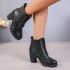 British lace-up medium heel short boots winter new thick heel large size pointed Martin boots