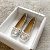 Small height increase ballet shoes autumn new square head silver flat bow single shoes