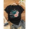 Europese Maat Dames Vintage Bloemen Schildpad & Perzikbloesem Print Korte Mouw T-shirt - Zacht Stretch Ronde Hals voor Lente Zomer Herfst
