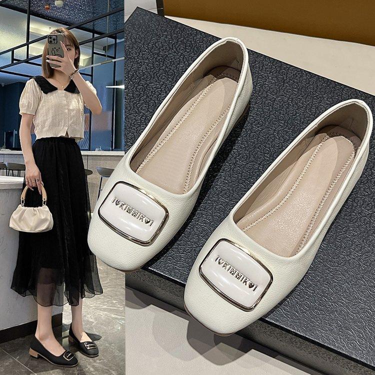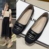 French high-end shallow single shoes, new autumn black flat-soled beanie shoes, square head ladyshoes.