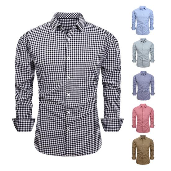 Dit herenoverhemd is gemaakt van een zachte, huidvriendelijke mix van polyester en spandex, die een lichte elasticiteit biedt voor comfort gedurende de hele dag.. De lichtgewicht stof zorgt voor ademend vermogen en bewegingsvrijheid, waardoor het ideaal is voor zowel formele als casual gelegenheden.. Met klassieke revers, lange mouwen en een stijlvol ruitpatroon biedt dit overhemd de perfecte balans tussen eenvoud en verfijning – ideaal voor zakelijke bijeenkomsten of dagelijks gebruik.