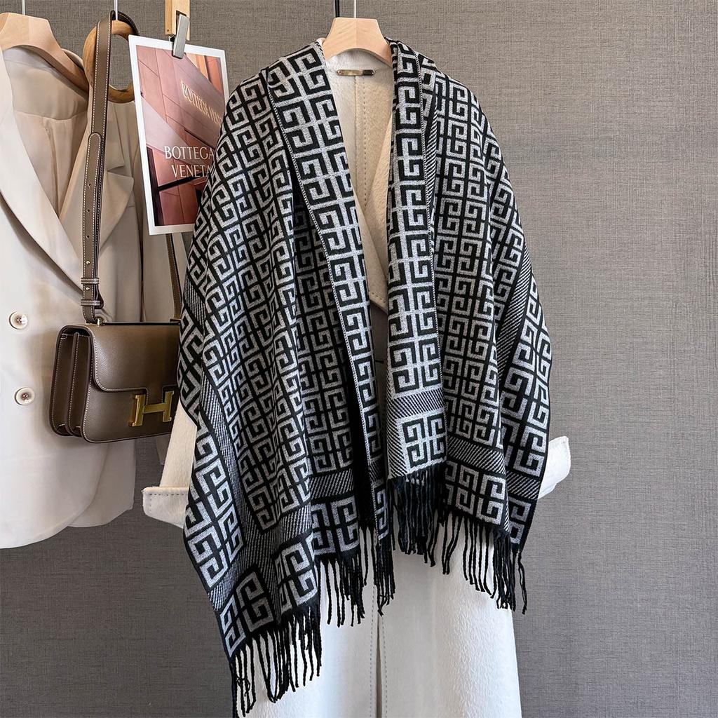 Autumn and winter classic geometric paper pattern imitation cashmere jacquard thick scarf women's high-end sense versatile scarf warm large shawl