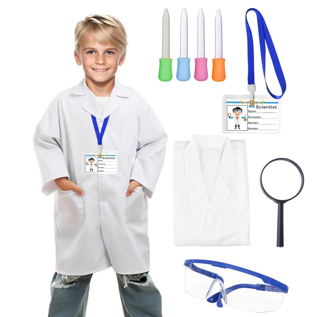 Apparlxer Dokter Cosplay Wetenschapper Kostuum voor Kinderen, Witte Jas, Labjas, Veiligheidsbril, Druppelaar, ID-kaart, Naamplaatje, Halloween, Theater, Evenementen,