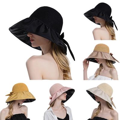 Outdoor Wide Brim Sun Hat Spring Summer Bow Bucket Hat Trendy Sun Protection Hat for Women