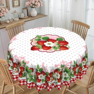 1 Stuk Ronde en Rechthoekige Tafelkleden met Aardbeienthema, Verkrijgbaar in Verschillende Maten, Roze Aardbeienpatroon Printontwerp, Retro Boerderijstijl, Sp