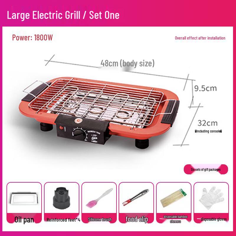 Grote Oranje-Rode Elektrische Rookloze Binnengrill met 6-delige Set