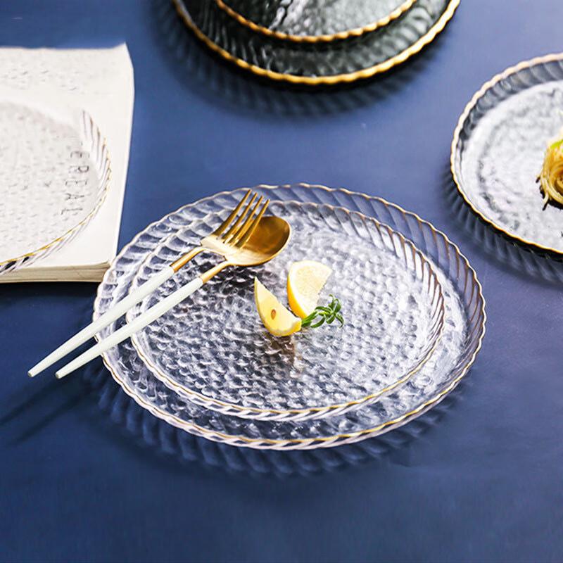Nordic Style Glass Dinner Plate with Gold Rim