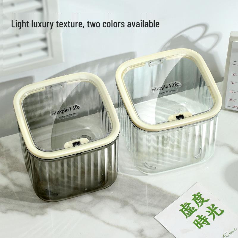 Transparent Desktop Trash Can with Lid - Stylish Hair Accessories and Storage Box