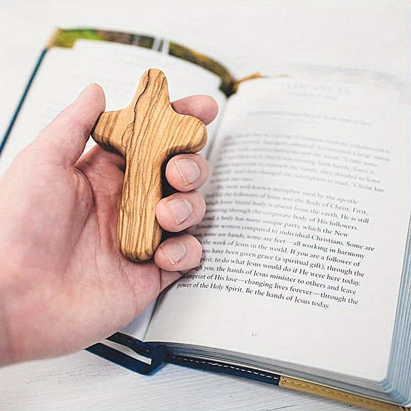 Palm Cross Olive Wood Smooth Hand Cross Wooden Prayer Cross Christ Ornaments Holding Crosses Religious Charm Necklace Pendant