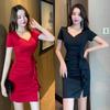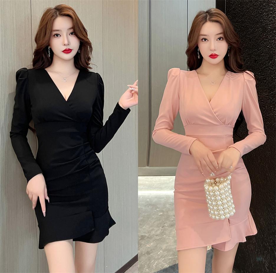 Sexy bottoming hip skirt New women's clothing Celebrity temperament Muse fan v-neck slim dress