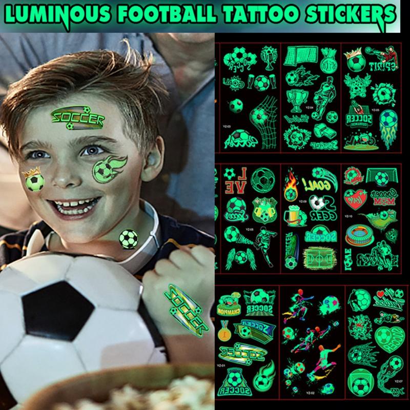 10PCS Soccer Temporary Tattoos Glow in the Dark Waterproof Luminous Fake Tattoo Body Stickers for Football Tournament Fans