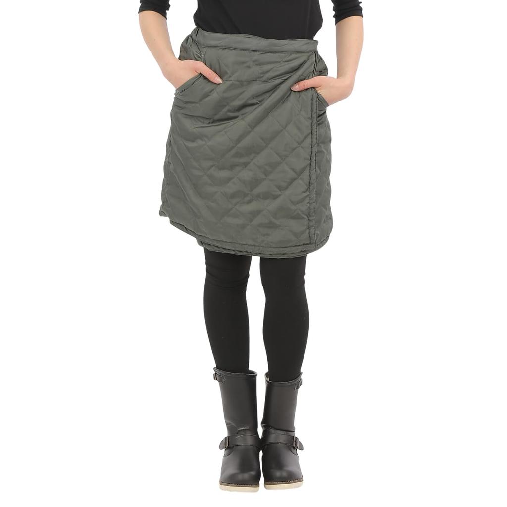 Onion Cross Quilted Wrap 55cm with Warm for Winter Women's Skirt, Long, Padded, Fleece-Lined, Pockets, (M-L, Khaki)