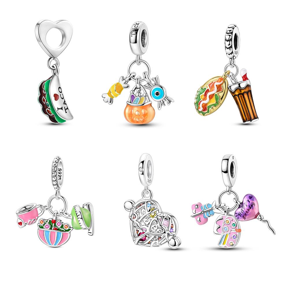 Plated 925 Silver Dessert cuisine Charms Fit Original 925 Charms Bracelet Beads Jewelry Gifts for Women