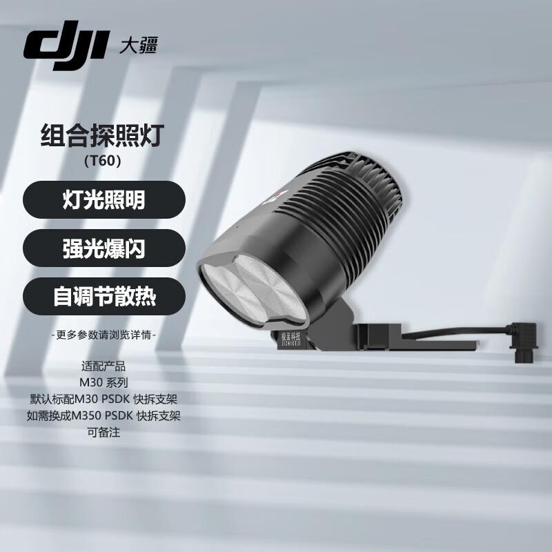 The DJI T60 Combination Searchlight is a professional-grade lighting system designed for Matrice series drones. It offers a three-party mount and is compatible with DJI Matrice M30 series, M300 RTK, and M350 RTK drones via a PSDK quick-release bracket, making it ideal for various industrial and emergency applications. (CN version)
