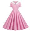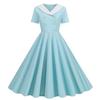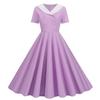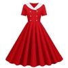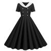 Dames Contrasterende Mode V-hals Dubbele Rij Slank en Dun Retro Zoom Jurk
