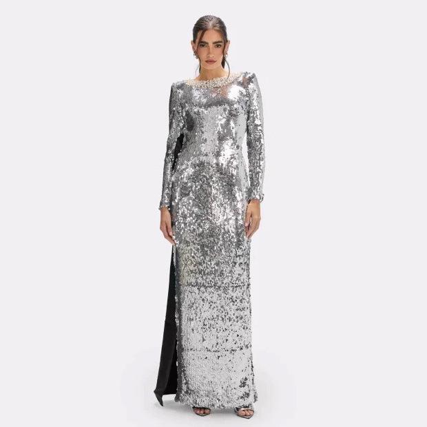 Zilver-Grijze Pailletten Slim Fit Damesmode - Herfst/Winter Collectie 2025