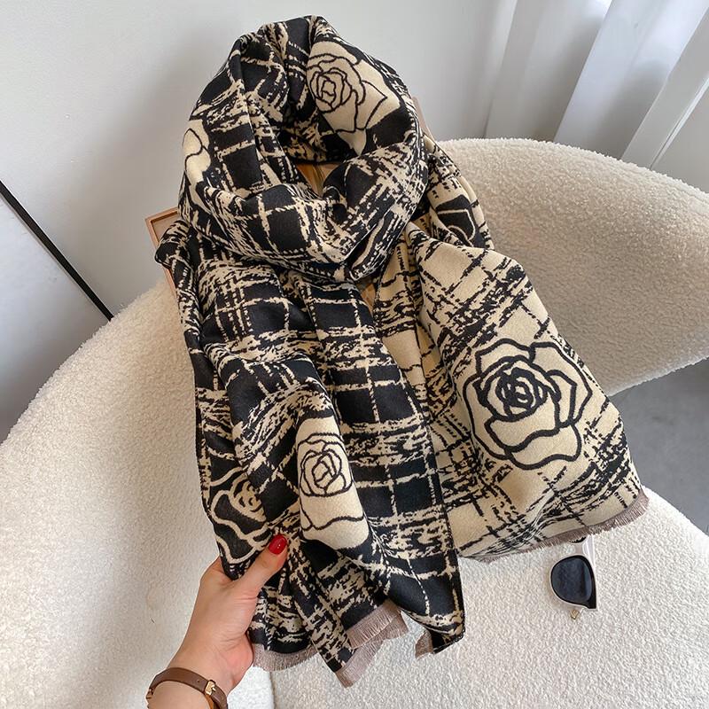 Women's Double-Sided Camellia Faux Cashmere Scarf