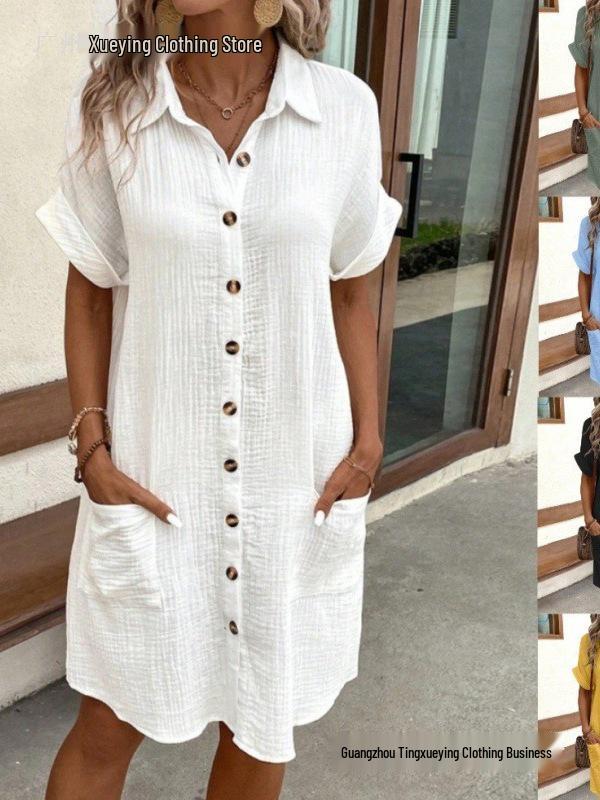 Experience effortless style with this casual dress, crafted from comfortable knitted fabrics and high-quality polyester. The dress features a mid-length design with a single-breasted front and short sleeves, perfect for versatile everyday wear. Its solid color enhances its elegant simplicity, making it a great addition to any wardrobe. Ideal for casual outings, it combines comfort with chic style, ensuring you look and feel your best.