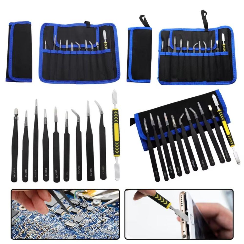 9/10pcs Durable Precision Tweezers Set Curved/Straight Design Maintenance Tools Soldering Craft