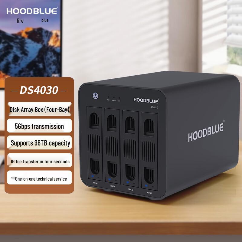 The Hoodblue DS4030 is a high-performance 4-bay Direct Attached Storage (DAS) enclosure crafted from durable aluminum alloy. Designed for robust data storage and backup, it features RAID support, hot-swap functionality, and robust data protection. It supports HDD hibernation for energy efficiency and power-on auto start. With a maximum supported capacity of up to 120TB, this enclosure is ideal for professionals and businesses requiring expandable and reliable direct storage solutions.