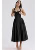 2025 European & American Style Summer Slim Spaghetti Strap Printed Halter Lace Dress