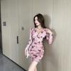 Women's Sexy Black Folded Mesh V-Neck Long Sleeve Hip Wrap Short Bottom Dress Autumn New