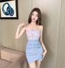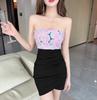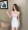 Sexy low-cut one-word collar flower splicing waist-wrapped hip tube top base dress store bouncing women's clothing