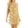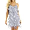 "Dames mouwloze concertjurk met pailletten en kwastjes in effen kleur, haltermodel