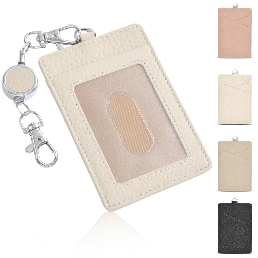 Engraph Genuine Leather Pass Case, ID Card Holder, Vertical, Women's, with Reel and Keychain, Slim, Popular, Cute, Men's, Commuting, Lightweight,