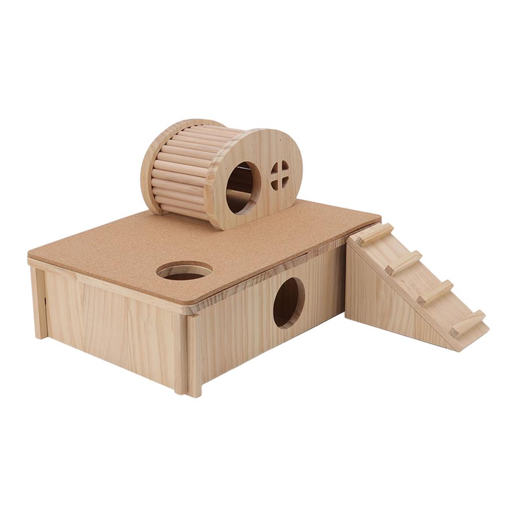 Wooden Hamster Ladder House Wear Resistant Hamster Platform with Hideout Climbing Ladder for Small Pets Chinchilla Rabbit