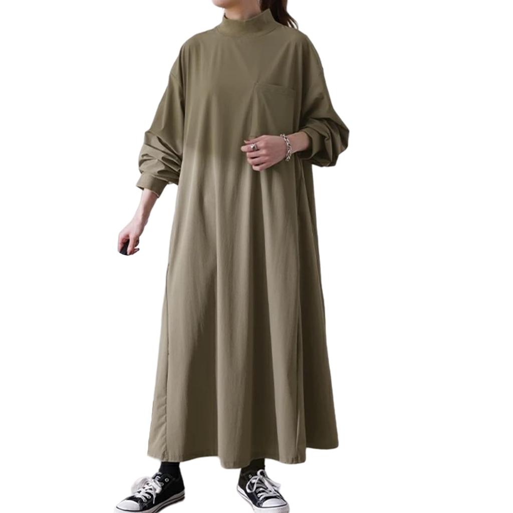 Merelop Ceto Long Sleeve Loose Plus High Solid Perfect for Everyday and Winter Women's Dress, A-Line, Fit, Sizes, Neck, Flattering, Color, Wear,