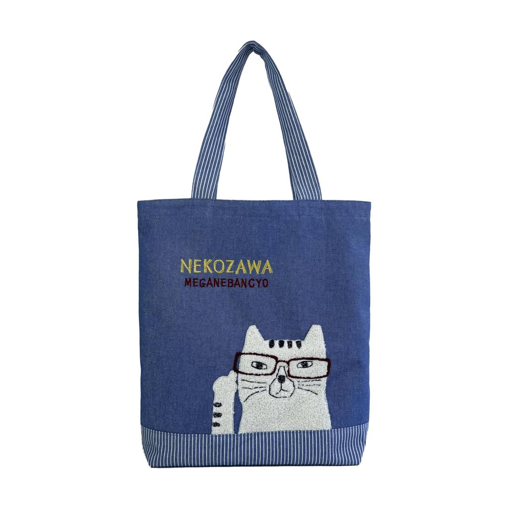 [Kusuguru Japan] Geverfde Denim Tote Bag, Nekomaruke BL