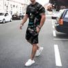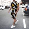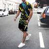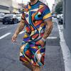 Irregular Geometric Print Short Sleeve And Shorts Set Fashion Men's T-shirt Shorts 2-piece Set Quick-dry Breathable Mesh T Shirt