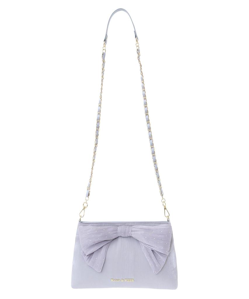 Maison de FLEUR Stone Ribbon Shoulder Bag, Grayish Blue, 08000047000