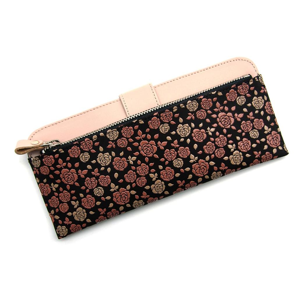 Inden-ya Inden Long Wallet, Kaguwa Rose Design, Traditional Craftsmanship, Koshu Inden Deer Leather, Lacquered, Original Brand (No. 8402)