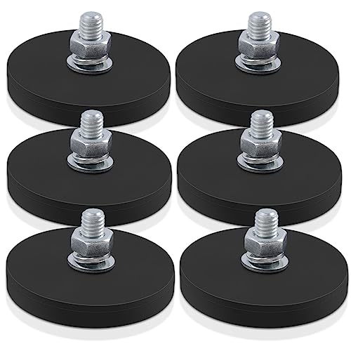 MAGXCENE 6-Pack Round Neodymium Magnets with Rubber Coated Bases, Strong Magnets with M6 Threads and Studs, 43mm Diameter, for Magnetic Mounts of Tool