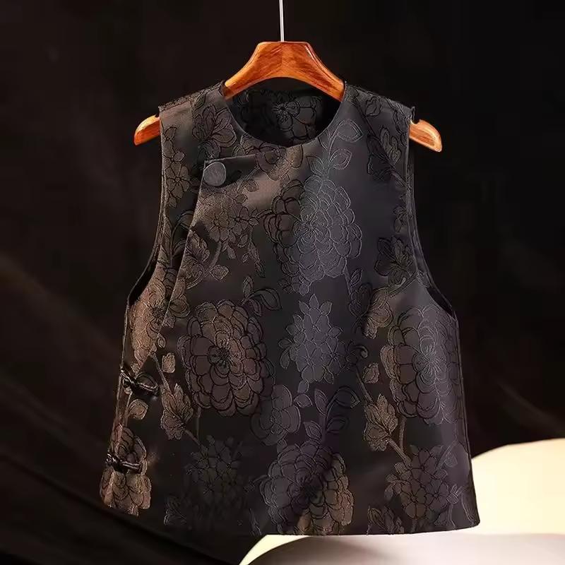Women's Jackets Chinese Style Vest Women's National Style Retro Embroidery Buckle Round Neck Cheongsam Waistcoat Tide