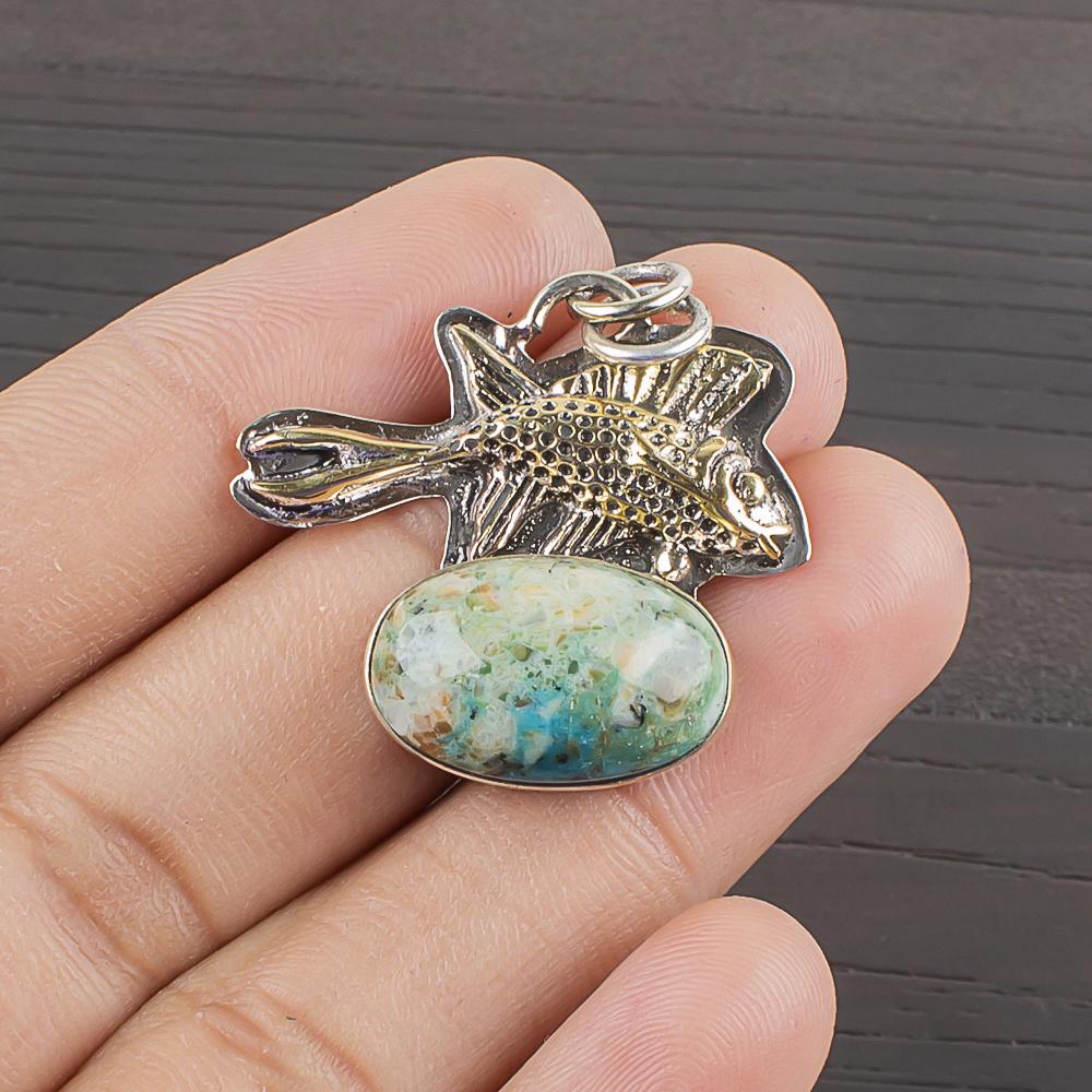 Natuurlijke Chrysocolla Edelsteen 925 Sterling Zilver Sieraden Ontwerper Hanger 1,18" AJP-2233