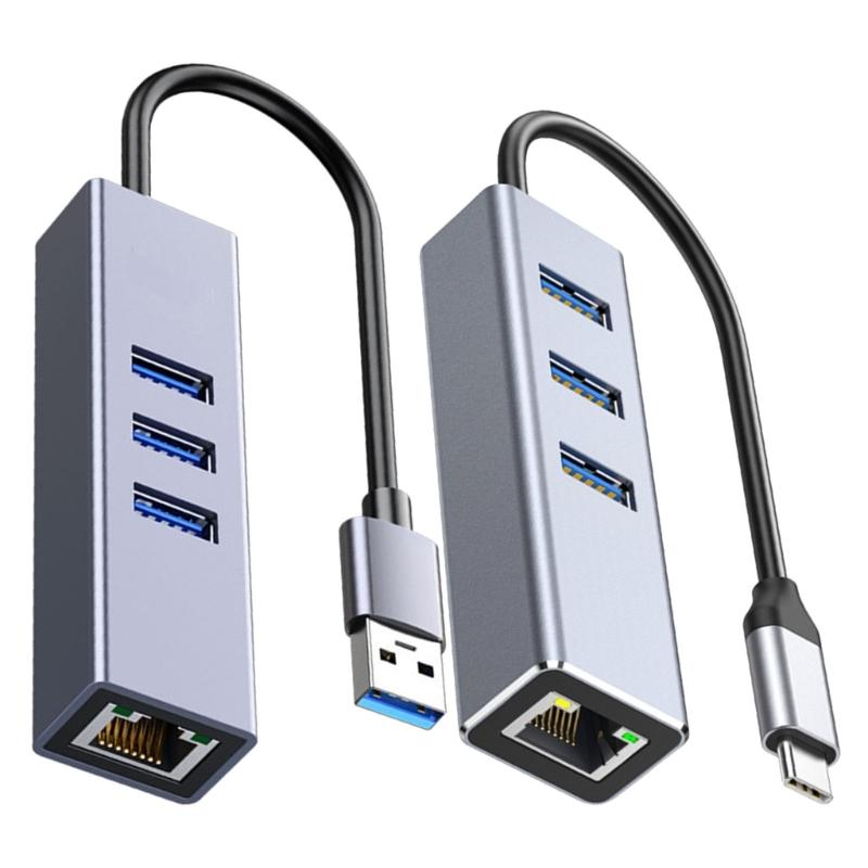 Efficient USB 3.0 Type C Hub With 3 Port And Gigabit Ethernet Adapter Suitable For Laptops And Computers Fast Internet